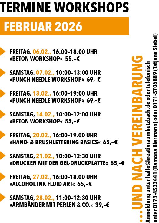 es ist soweit: die termine unserer kreativ-workshops bis ende märz 2026 stehen fest!